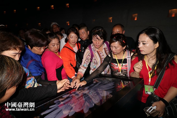 “我的家鄉(xiāng)在那魯灣,你的家鄉(xiāng)在那魯灣,從前的時候是一家人,現(xiàn)在還是一家人……”來自南投縣的議員史清水拍著手,帶頭唱起了臺灣民歌《我們都是一家人》。聞聲而動,參訪團(tuán)成員很快就簇?fù)碓谝黄,用嘹亮歌聲抒發(fā)同胞手足情。