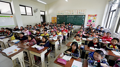 位于綿陽(yáng)市安州區(qū)秀水鎮(zhèn)第一中心小學(xué)的同學(xué)們?cè)谛陆淌矣瓉?lái)新學(xué)期。(四川省臺(tái)辦供圖)