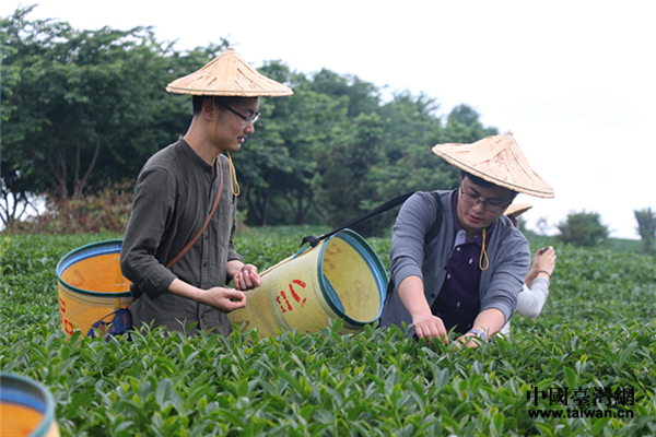 尋茶之旅團(tuán)成員體驗(yàn)“采茶”。(中國(guó)臺(tái)灣網(wǎng) 郜利敏 攝)