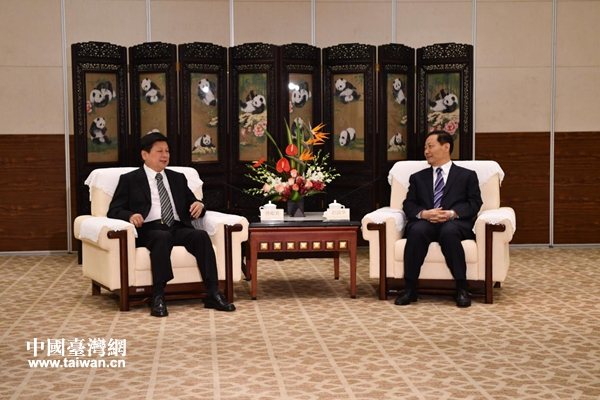 四川省委書記彭清華(右)會見臺灣花蓮縣縣長傅崐萁一行。(圖片來源:四川省臺辦)
