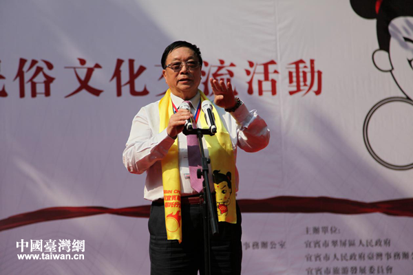 臺灣中華兩岸交流協(xié)會創(chuàng)會長劉宗明致辭。(圖片來源:宜賓市臺辦)
