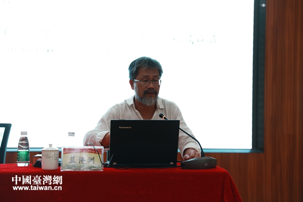 藍(lán)博洲先生為現(xiàn)場(chǎng)聽眾作“臺(tái)灣人的身份認(rèn)同”講座。(圖片來(lái)源:廣西賀州市臺(tái)辦)