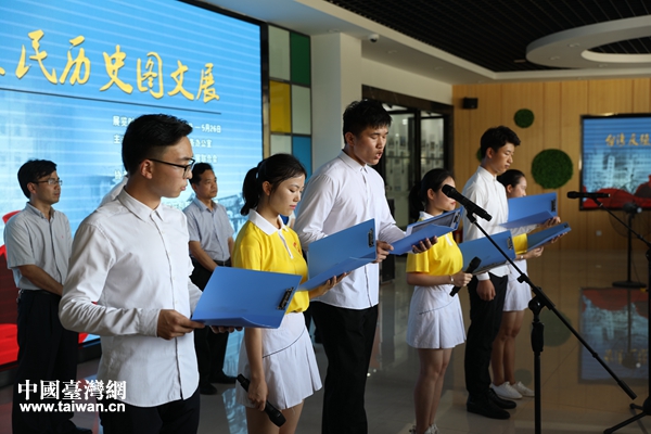 賀州學(xué)院的同學(xué)還朗誦了從圖文展中選取臺(tái)灣作家巫永福的詩(shī)詞《祖國(guó)》。(圖片來(lái)源:廣西賀州市臺(tái)辦)