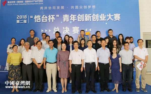 中國臺灣網(wǎng)6月1日惠州訊 5月25日上午,以“兩岸協(xié)同發(fā)展 共圓眾創(chuàng)夢想”為主題的2018第二屆“愷臺杯”青年創(chuàng)新創(chuàng)業(yè)大賽總決賽在廣東惠州大學(xué)生創(chuàng)業(yè)孵化基地舉行。惠州仲愷高新區(qū)委副書記、區(qū)管委會主任張莉蘭,惠州市臺灣事務(wù)局局長吳少忠,仲愷高新區(qū)管委會副主任、社會事務(wù)局局長陳仲剛,區(qū)管委會副主任傘金福等相關(guān)負責人,惠州市臺商協(xié)會會長沈榮發(fā),惠州市臺商協(xié)會第十三屆新任會長呂正一,惠州市臺協(xié)青年會會長張婷園,參賽企業(yè)(團隊)及企業(yè)代表等約60人出席了活動。
