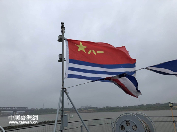 艦上八一軍旗迎風飄揚。(中國臺灣網 許秋玥 攝)