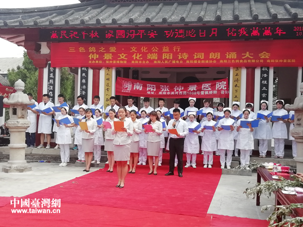 中國臺(tái)灣網(wǎng)6月19日南陽訊 6月14日,仲景文化端陽詩詞朗誦大會(huì)在河南省南陽市醫(yī)圣祠舉辦,南陽市臺(tái)辦、南陽市臺(tái)商界、南陽博物館界、播音朗誦界、書畫界等知名人士和詩詞朗誦愛好者共200余人參加了活動(dòng)。