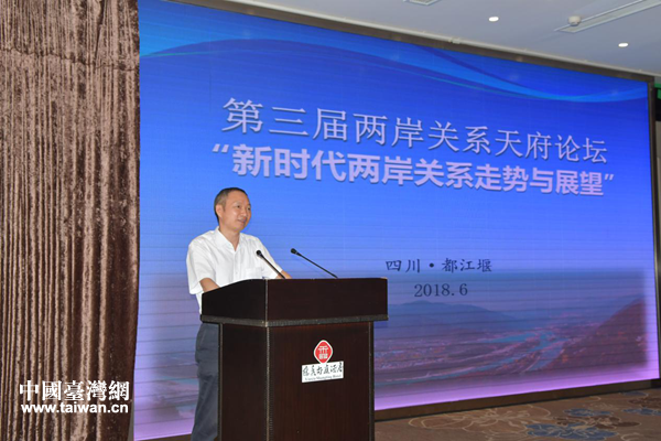 中國臺灣網(wǎng)6月25日成都訊 2018年6月23日至24日,以“新時代兩岸關系走勢與展望”為主題的第三屆兩岸關系天府論壇在四川成都都江堰市召開。海峽兩岸60余名知名學者圍繞論壇主題和“涉臺外部環(huán)境變化與兩岸關系走勢”、“民族復興前景下臺灣社會治理及民意走向”和“兩岸經濟社會交流合作的前景與作為”等議題展開了熱烈討論交流,為新形勢下推進兩岸關系融合發(fā)展、增進兩岸民眾福祉凝心聚力、獻計獻策。