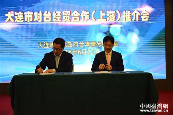 推介會(huì)上,大連市臺(tái)協(xié)與上海市臺(tái)協(xié)簽署《對(duì)口合作意向書(shū)》。(圖片來(lái)源:大連市臺(tái)辦)