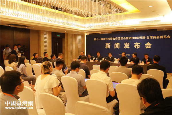 第十一屆津臺投資合作洽談會暨2018年天津·臺灣商品博覽會新聞發(fā)布會現(xiàn)場。(中國臺灣網(wǎng) 趙苗青 攝)