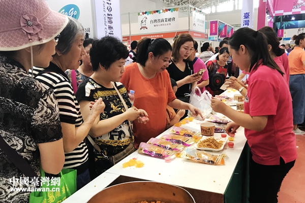 天津市民在臺(tái)博會(huì)品嘗臺(tái)灣美食。(中國(guó)臺(tái)灣網(wǎng) 趙苗青 攝)