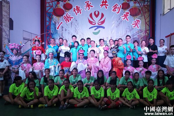 中國臺灣網(wǎng)7月9日梧州訊 7月6日,臺灣花蓮縣足球協(xié)會理事長陳益雄率花蓮縣光復(fù)中學(xué)、瑞北小學(xué)師生一行41人到廣西梧州市第十一中學(xué),參加“一脈相承 共創(chuàng)未來”體驗“粵劇”活動。