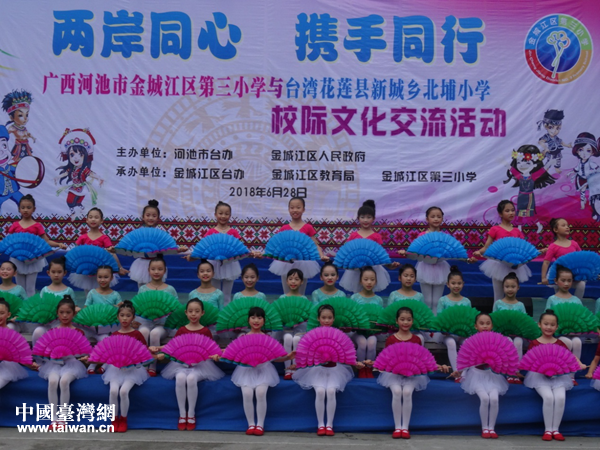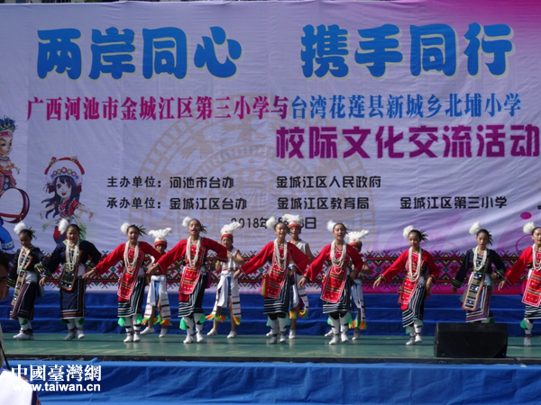 臺(tái)灣花蓮縣新城鄉(xiāng)北埔小學(xué)的舞蹈表演。(圖片來(lái)源:廣西河池市金城江區(qū)臺(tái)辦)