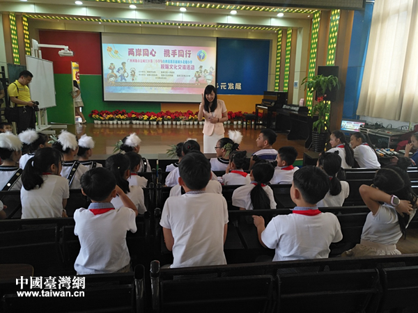 金花兩地學(xué)生共同朗誦繞口令。(圖片來(lái)源:廣西河池市金城江區(qū)臺(tái)辦)