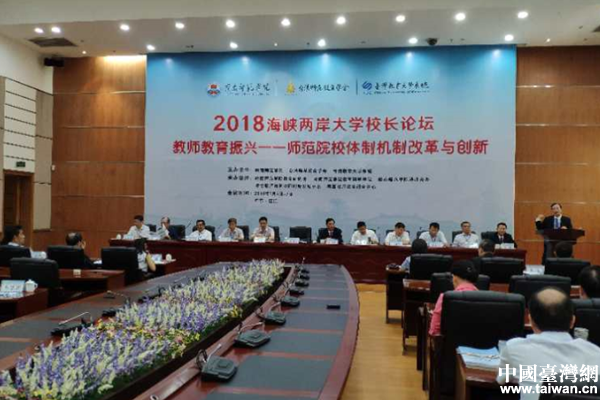 中國(guó)臺(tái)灣網(wǎng)7月10日湛江訊 7月6日,由嶺南師范學(xué)院、臺(tái)灣師范教育學(xué)會(huì)和臺(tái)灣教育大學(xué)系統(tǒng)共同主辦的2018海峽兩岸師范大學(xué)校長(zhǎng)論壇在湛江市召開(kāi)。來(lái)自海峽兩岸20多所院校的70多位大學(xué)校長(zhǎng)、專家教授齊聚嶺南師范學(xué)院,共同探討教師教育的振興,為師范院校體制機(jī)制的改革與創(chuàng)新“把脈助診”。湛江市政府臺(tái)灣事務(wù)局局長(zhǎng)莫代友參加了2018海峽兩岸師范大學(xué)校長(zhǎng)論壇。