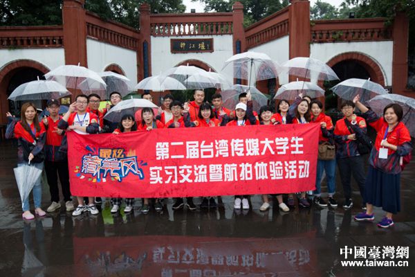 川臺(tái)學(xué)子在都江堰合影留念。(圖片來源:四川省臺(tái)辦)