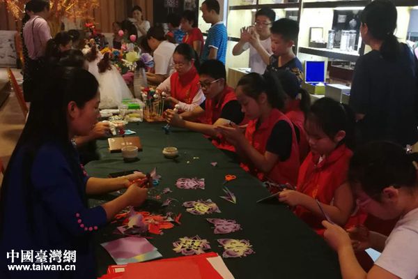 青少年臺胞嘗試剪紙藝術。(圖片來源:鄭州市臺辦)