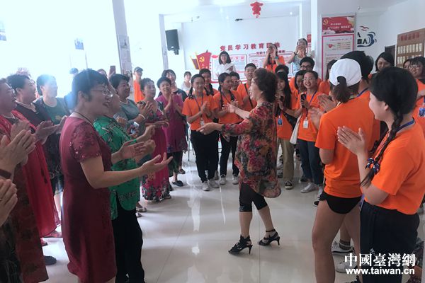 下午3時(shí),浩大的臺(tái)灣學(xué)子一行在工作人員的陪同下來到了鞍山市鐵東區(qū)富康社區(qū)參觀,人還未到,先聞其聲。學(xué)子們還未走到社區(qū)辦公大樓門口,在二樓彩排民樂、舞蹈的大叔大嬸兒們就已經(jīng)在向大家揮手呼喊?匆姛崆槿缁鸬氖迨灏⒁虃儯瑢W(xué)子們開始還有些羞澀,但在一番互動(dòng)交流之后,大家慢慢變得熱絡(luò)起來,和叔叔阿姨們唱歌跳舞,感受著大陸特有的社區(qū)文化,聽到社區(qū)工作人員對社區(qū)的講解后,更是感嘆工作人員對于社區(qū)管理的科學(xué)化和人性化。