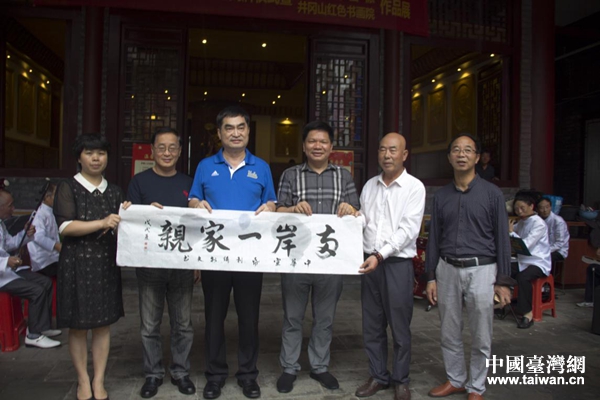 在吉安市臺(tái)辦主任劉云峰、副主任吳孝明、江西廬陵人文谷旅游集團(tuán)董事長(zhǎng)陳萬(wàn)洵的陪同下,鄧家基一行到吉安廬陵老街參訪,廬陵老街藝術(shù)家向鄧家基贈(zèng)送了《兩岸一家親》書(shū)法作品,祝愿兩岸同胞一家親。