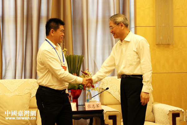 7月18日上午,全國(guó)人大常委會(huì)委員、海協(xié)會(huì)會(huì)長(zhǎng)張志軍會(huì)見(jiàn)參加第三屆海峽兩岸青年?yáng)|湖論壇的臺(tái)灣青年代表。(中國(guó)臺(tái)灣網(wǎng) 趙苗青 攝)