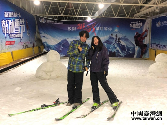 梁博鈞和陳思锜在滑雪自駕游活動(dòng)直播現(xiàn)場。(圖片來源:汪夢(mèng)媛)