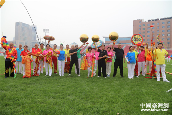 為了讓更多的普通群眾能夠參與到兩岸體育交流活動中來,開幕式特邀請石景山的百姓運動隊一同參加,他們帶來了精彩的異型空竹表演,十余種材質(zhì)各異、大小不同的空竹上下翻騰,閃轉騰挪,令人目不暇接,展示了北京老百姓“我運動、我健康、我快樂”的良好精神風貌,引來兩岸嘉賓和參賽隊員的陣陣掌聲。