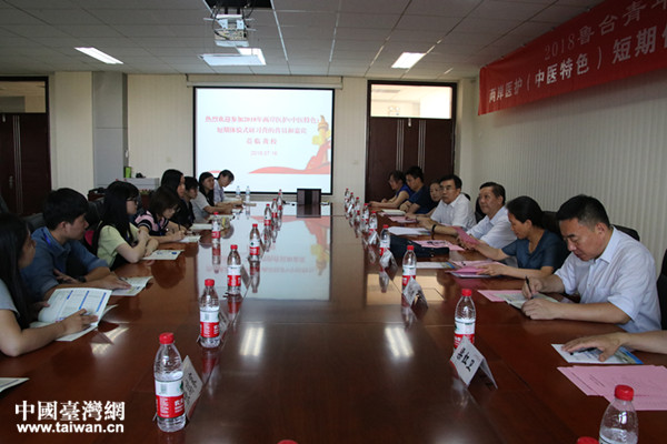 2018兩岸醫(yī)護(hù)(中醫(yī)特色)短期研習(xí)營(yíng)在山東中醫(yī)藥大學(xué)開營(yíng)儀式。(圖片來源:山東省臺(tái)辦)