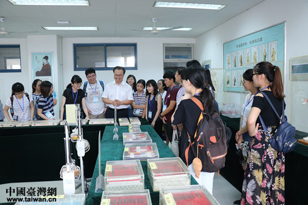 7月17日,參加研習(xí)營(yíng)的同學(xué)們先后參觀了山東中醫(yī)藥大學(xué)圖書館古籍特藏部、山東省中醫(yī)藥博物館,到學(xué)校實(shí)驗(yàn)中心觀摩了藥用植物標(biāo)本、針灸器具展示等。通過參觀,來自臺(tái)灣的同學(xué)們紛紛表示開闊了視野,增強(qiáng)了對(duì)中醫(yī)藥傳統(tǒng)文化的感性認(rèn)識(shí),深刻感受到了中醫(yī)文化的博大精深。接下來,學(xué)生們還將通過聆聽《中醫(yī)文化和人文關(guān)懷》、《中醫(yī)護(hù)理實(shí)訓(xùn)(耳穴壓豆)》、《老年人居喪風(fēng)險(xiǎn)研究》等方面的講座,并安排了山東中醫(yī)藥大學(xué)11名同學(xué)與來自臺(tái)灣的11名同學(xué)“一對(duì)一”結(jié)對(duì)學(xué)習(xí)交流進(jìn)一步加深對(duì)中醫(yī)文化和中醫(yī)特色護(hù)理的感受和認(rèn)識(shí),和兩岸醫(yī)護(hù)教學(xué)的特點(diǎn)。