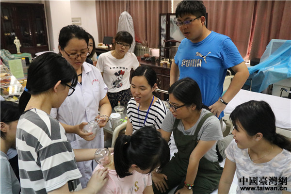 體驗拔火罐。(圖片來源:山東臺辦)