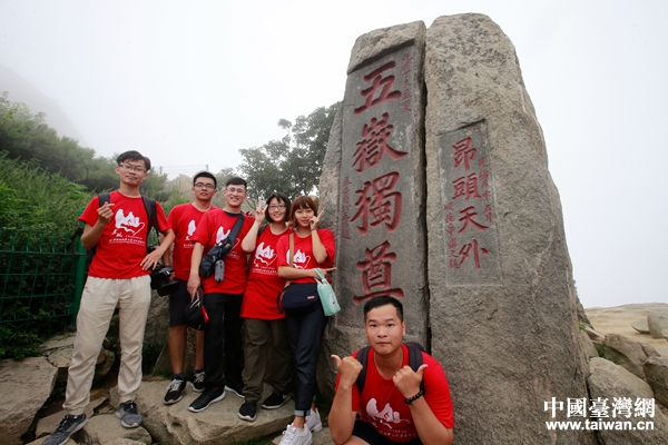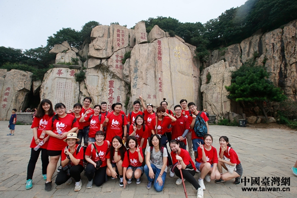 參加暑學(xué)營(yíng)的兩岸青年登上泰山。(圖片來源:山東省臺(tái)辦)
