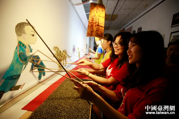 暑學(xué)營(yíng)的兩岸青年觀看并體驗(yàn)了世界非物質(zhì)文化遺產(chǎn)——泰山皮影戲。(圖片來源:山東省臺(tái)辦)