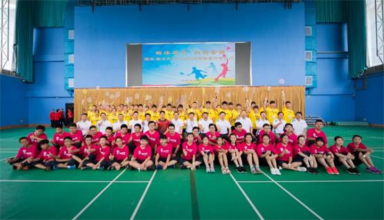 “南京·新北青少年羽毛球體驗(yàn)營(yíng)”參與學(xué)生合影留念。(圖片來(lái)源:南京市臺(tái)辦)
