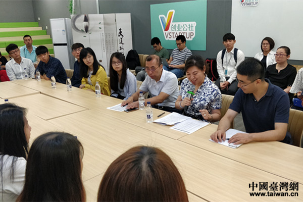 臺胞青年與指導(dǎo)老師交流暢談。(中國臺灣網(wǎng) 李曄清 攝)
