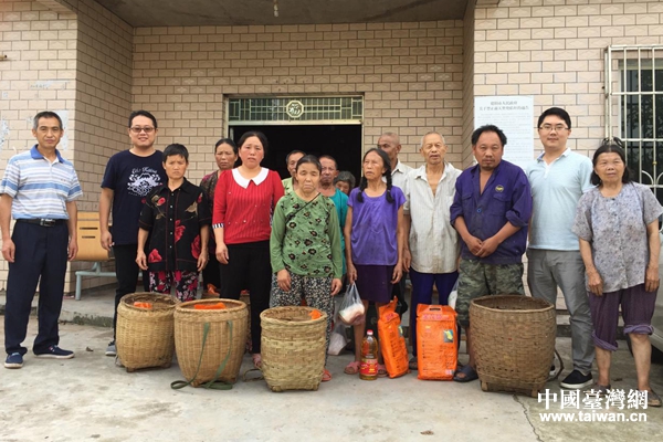 陳建仁(左二)與高山村部分困難群眾合影。(圖片來源:德陽市臺辦)