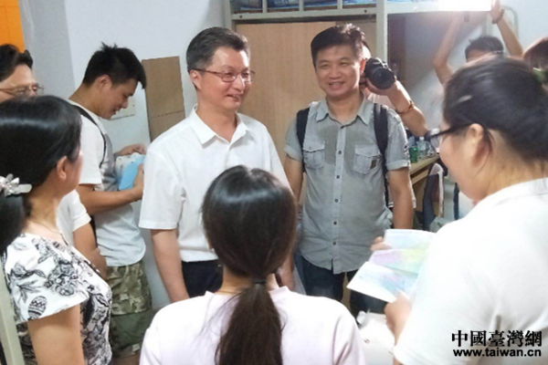 中國臺灣網(wǎng)8月9日廣州訊 8月2日晚,廣東省廣州市臺辦主任曾衛(wèi)東帶隊前往暨南大學(xué)宿舍看望慰問參加“筑夢珠江展翅飛翔—2018臺灣大學(xué)生廣州實習體驗活動”的100多名臺灣學(xué)生,了解他們的實習和生活情況。市臺辦副主任鄺偉斐、暨南大學(xué)統(tǒng)戰(zhàn)部副部長黃少堂陪同慰問。