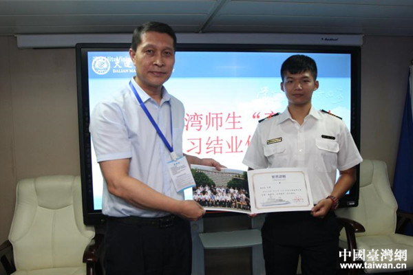 結(jié)業(yè)儀式上,“育鯤”輪船長吳衛(wèi)兵祝賀來自高雄科技大學(xué)和臺灣海洋大學(xué)的25位同學(xué)順利完成實習(xí)計劃。他說,雖然只有短短10天,但臺灣和大連的同學(xué)們建立了深厚的友誼,希望今后有更多的臺灣師生到船實習(xí),進一步增進兩岸青年學(xué)生間的感情,促進兩岸的交流。來自臺灣高雄科技大學(xué)鄒明城教授和臺灣海洋大學(xué)的古忠杰副教授對此次實習(xí)項目的精心安排表示感謝,實習(xí)活動成果豐碩,教育深刻,希望以后有更多機會開展類似的活動,為兩岸師生交流創(chuàng)造更多機會。