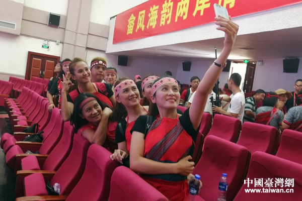 臺灣少數(shù)民族演出結束后自拍留念。(中國臺灣網 張露露 攝)