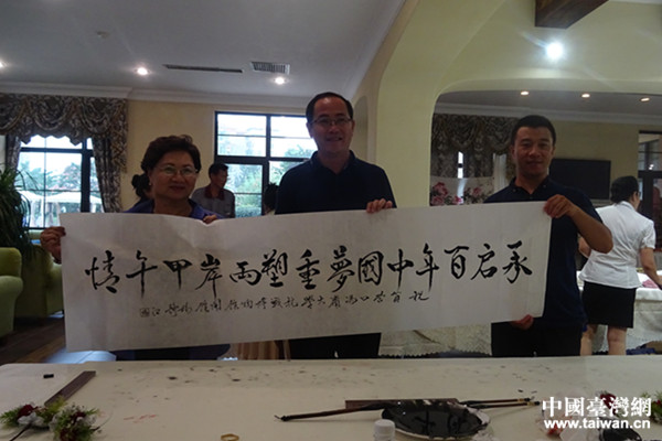 臺(tái)灣書(shū)法家題寫(xiě)兩岸一家親。(圖片來(lái)源:遼寧臺(tái)辦)