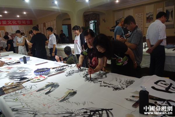 以國(guó)際女書(shū)畫(huà)家協(xié)會(huì)理事長(zhǎng)楊靜江為團(tuán)長(zhǎng)的臺(tái)灣書(shū)畫(huà)家團(tuán)和營(yíng)口書(shū)畫(huà)家共同創(chuàng)作交流。在筆會(huì)現(xiàn)場(chǎng),營(yíng)臺(tái)兩地書(shū)畫(huà)家凝神靜氣,揮毫潑墨,勾勒水光山色、春華秋實(shí)。大家以書(shū)會(huì)友,以畫(huà)傳情,創(chuàng)作書(shū)法作品120多幅、畫(huà)作80多幅。這些作品弘揚(yáng)了母愛(ài)文化和中華民族傳統(tǒng)書(shū)畫(huà)藝術(shù),表達(dá)了海峽兩岸人民的深厚情誼。 (中國(guó)臺(tái)灣網(wǎng)遼寧臺(tái)辦通訊員 張愛(ài)民 趙旭平)