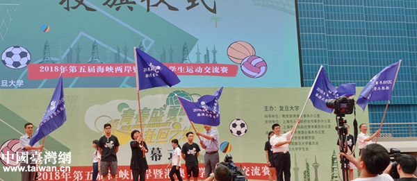 2018年第五屆海峽兩岸暨港澳大學生運動交流賽開幕。(圖片來源:上海市臺辦)
