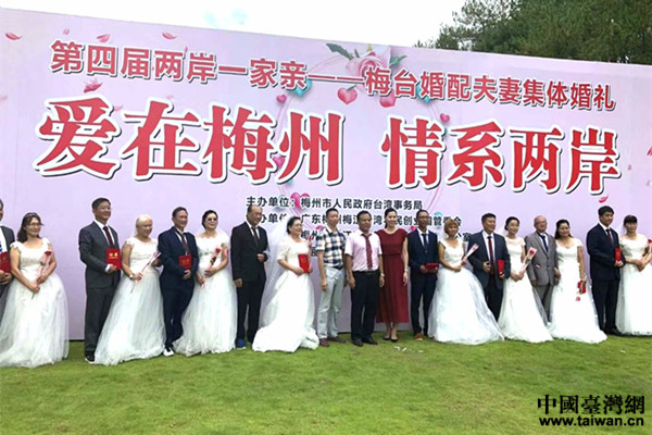 愛在梅州,情系兩岸,梅臺婚配夫妻集體婚禮。(圖片來源:梅州市梅江區(qū)臺辦)