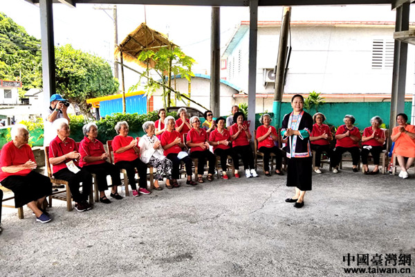 為豐濱鄉(xiāng)日托所老人表演百色民歌。(圖片來(lái)源:廣西百色市臺(tái)辦)