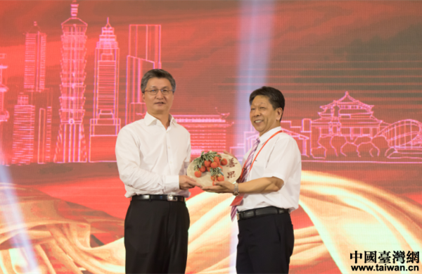 曾衛(wèi)東主任向市臺協(xié)增城分會贈送紀(jì)念品。(圖片來源:廣州市增城區(qū)臺辦)