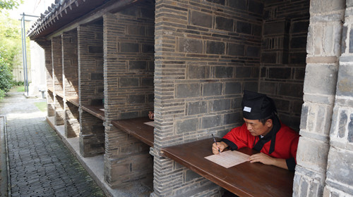 一個個高6尺、深4尺、寬3尺的號舍南北排列開來,身著古裝的研習(xí)營學(xué)子們按照座位,用力挪動小木板進(jìn)入號舍內(nèi),開始進(jìn)行考試!翱臻g很小,古代人在里面呆上幾天幾夜太煎熬了!迸_灣銘傳大學(xué)的學(xué)生感慨說,在這個“小屋子”里做了一套專門有關(guān)科舉考試內(nèi)容的考卷,不僅重溫了科考?xì)v史,更是體驗(yàn)到古代科舉考試之路的辛苦。