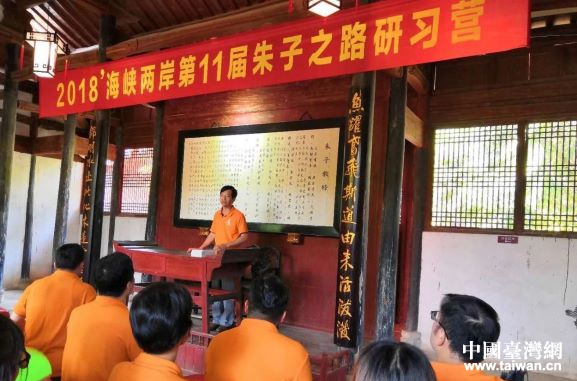 中國(guó)臺(tái)灣網(wǎng)8月28日百色訊 追尋朱子足跡,感受圣賢魅力。近日,2018海峽兩岸第11屆朱子之路研習(xí)營(yíng)活動(dòng)走進(jìn)鵝湖書院,來自臺(tái)灣師范大學(xué)、臺(tái)灣中央大學(xué)、臺(tái)灣大學(xué)、臺(tái)灣志道書院以及福建師范大學(xué)、廈門大學(xué)、南京大學(xué)、廣西大學(xué)等高校等45名師生開展了研習(xí)討論。此次活動(dòng)由臺(tái)灣師范大學(xué)東亞文化與漢學(xué)研究中心主任張將昆教授擔(dān)任研習(xí)營(yíng)團(tuán)長(zhǎng),閩北朱子后裔聯(lián)誼會(huì)副會(huì)長(zhǎng)朱美珍,廣西大學(xué)文學(xué)院黨委書記、博導(dǎo)李寅生等參加活動(dòng),鵝湖書院風(fēng)景名勝區(qū)管委會(huì)主任張賽華接待了研習(xí)團(tuán)一行。