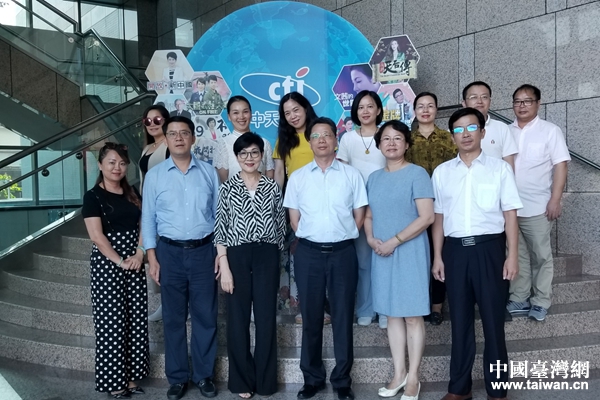 交流團(tuán)與旺旺集團(tuán)執(zhí)行長胡雪珠在中天電視臺合影。(圖片來源:玉林市臺辦)