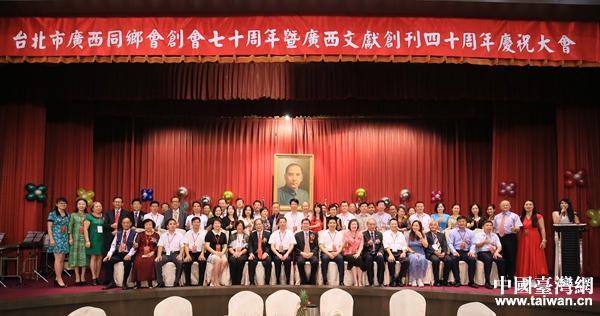 賀州參訪團參加臺北廣西同鄉(xiāng)會創(chuàng)會70周年慶典活動并合影留念。(圖片來源:賀州市臺辦)