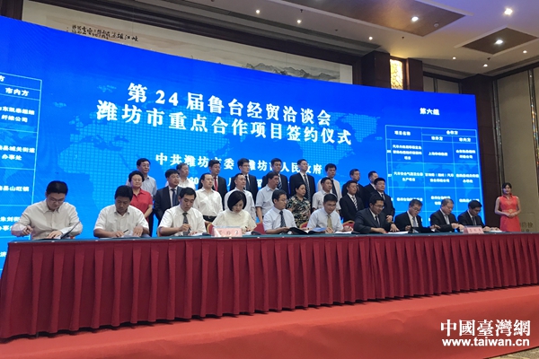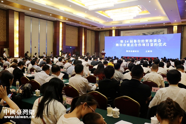 第24屆魯臺經(jīng)貿(mào)洽談會濰坊市重點(diǎn)合作項(xiàng)目簽約儀式現(xiàn)場。(中國臺灣網(wǎng) 趙苗青 攝)