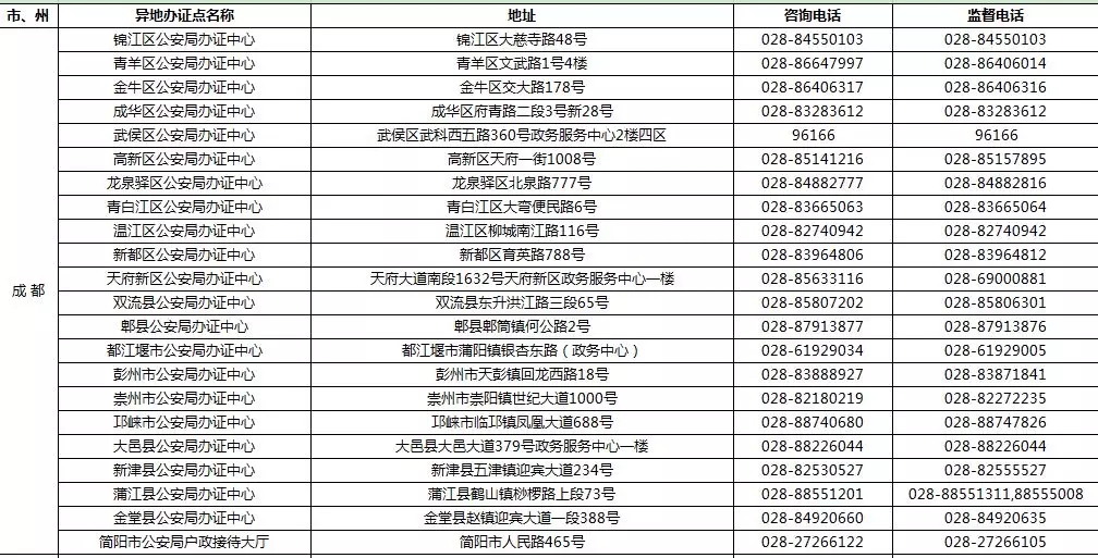 四川省港澳臺(tái)居民居住證受理點(diǎn)名稱、地址,咨詢及監(jiān)督電話: