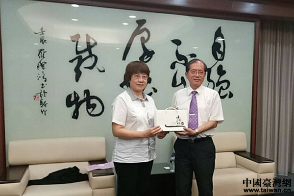 呂曉莉向陳信文贈(zèng)送《中國李莊》書籍。(圖片來源:宜賓市臺(tái)辦)