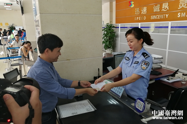 中國臺灣網(wǎng)9月3日成都訊 9月1日起,四川省全面啟動港澳臺居民居住證受理制發(fā)工作,這意味著即日起,在川的港澳臺居民就能在全省189個縣(市、區(qū))居民身份證異地受理點申請辦理港澳臺居住證。一大早就有不少臺灣同胞陸陸續(xù)續(xù)來到辦理點申領居住證。